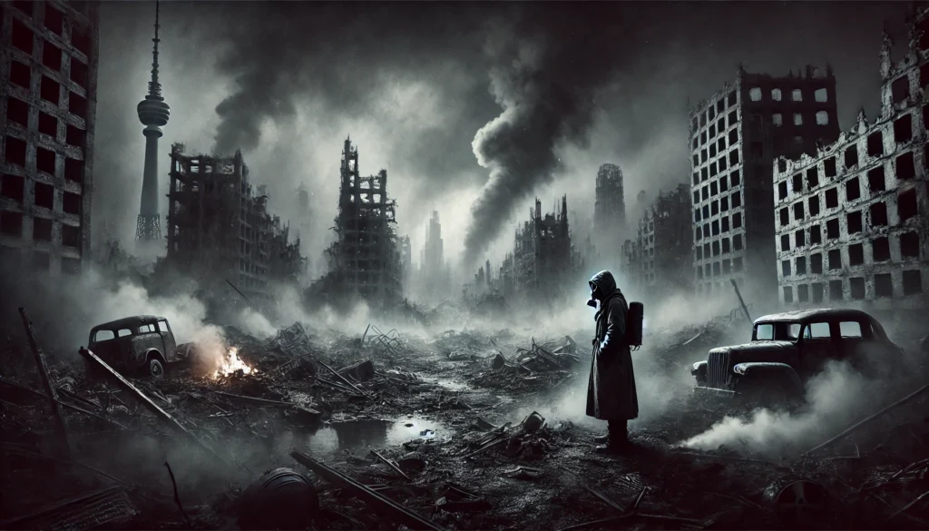 - „Fallout“ handelt von den langfristigen Auswirkungen der nuklearen Strahlung. Der Protagonist beobachtet, wie die Überreste der Zivilisation weiter zerfallen, während die tödliche Strahlung alles Leben auslöscht.